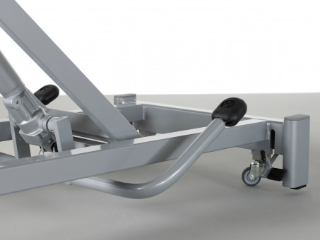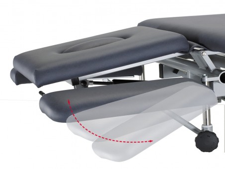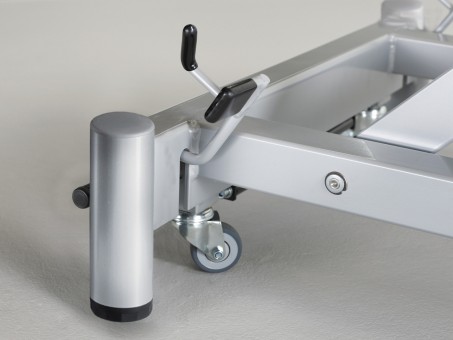 Wenn's auch ohne Elektrokabel gehen soll: Höhenverstellung mittels solider Fusspumpenhydraulik von beiden Seiten der Liege bedienbar.